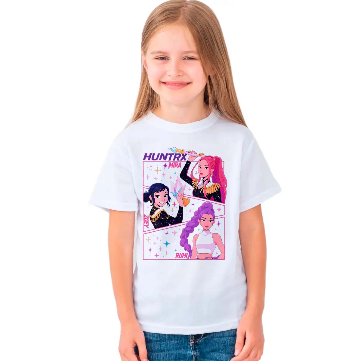 Lleva contigo el poder femenino y la actitud vibrante de Las Guerreras del K-Pop (K-Pop Demon Hunter) con la playera Las Guerreras del K-Pop Girls, una prenda que rinde homenaje a la fuerza, la unidad y el talento de las integrantes del grupo. Su diseño destaca la esencia de cada una, transmitiendo confianza, carisma y la energía única que las ha convertido en un símbolo dentro del K-Pop.