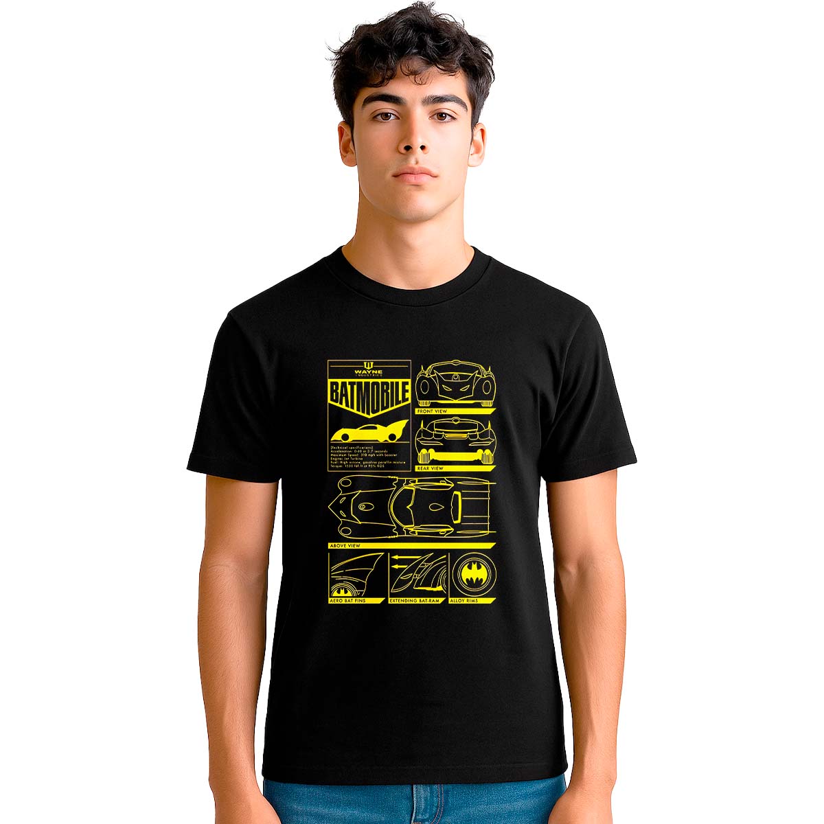 Playera Batman Batmobile: una prenda que corre entre la sombra y la velocidad, llevando la leyenda de Gotham a cada paso.