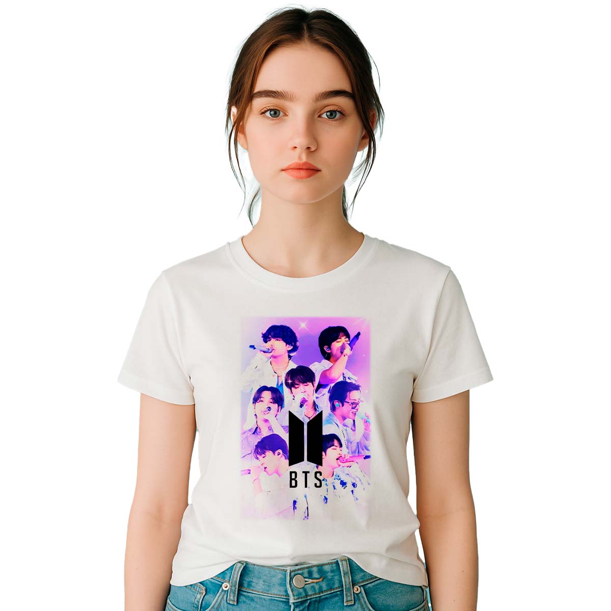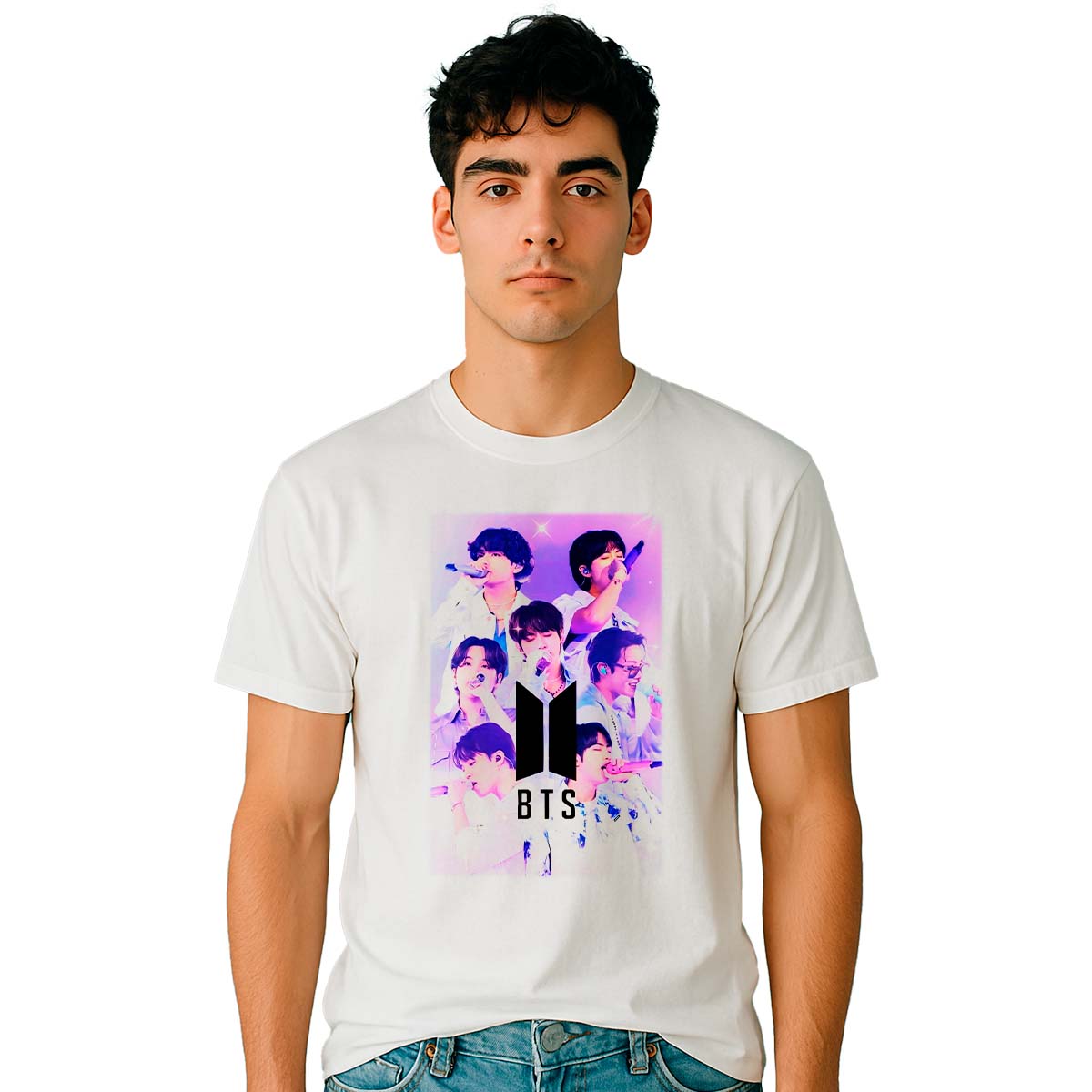 Lleva contigo la fuerza visual y el mensaje emocional de una de las bandas más grandes del pop global con esta playera BTS Poster, un diseño que captura la esencia del grupo con una imagen tipo póster que celebra su trayectoria, carisma y conexión con el ARMY.