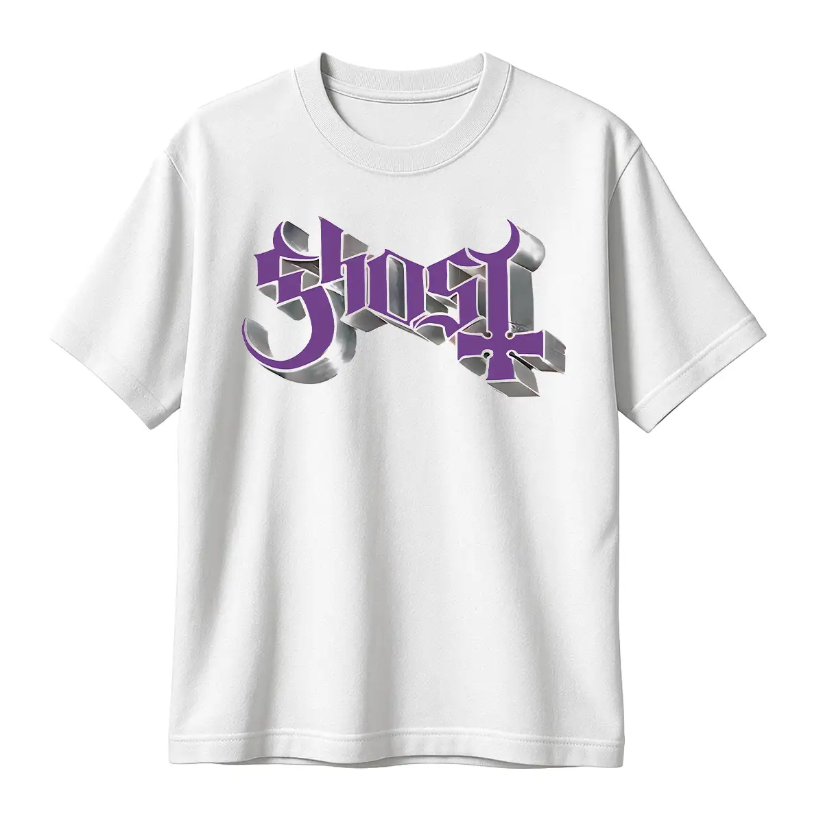 Ghost – Chrome Purple Skeletá: teatralidad metálica, espíritu gótico… y rebeldía púrpura impresa en tu camiseta.