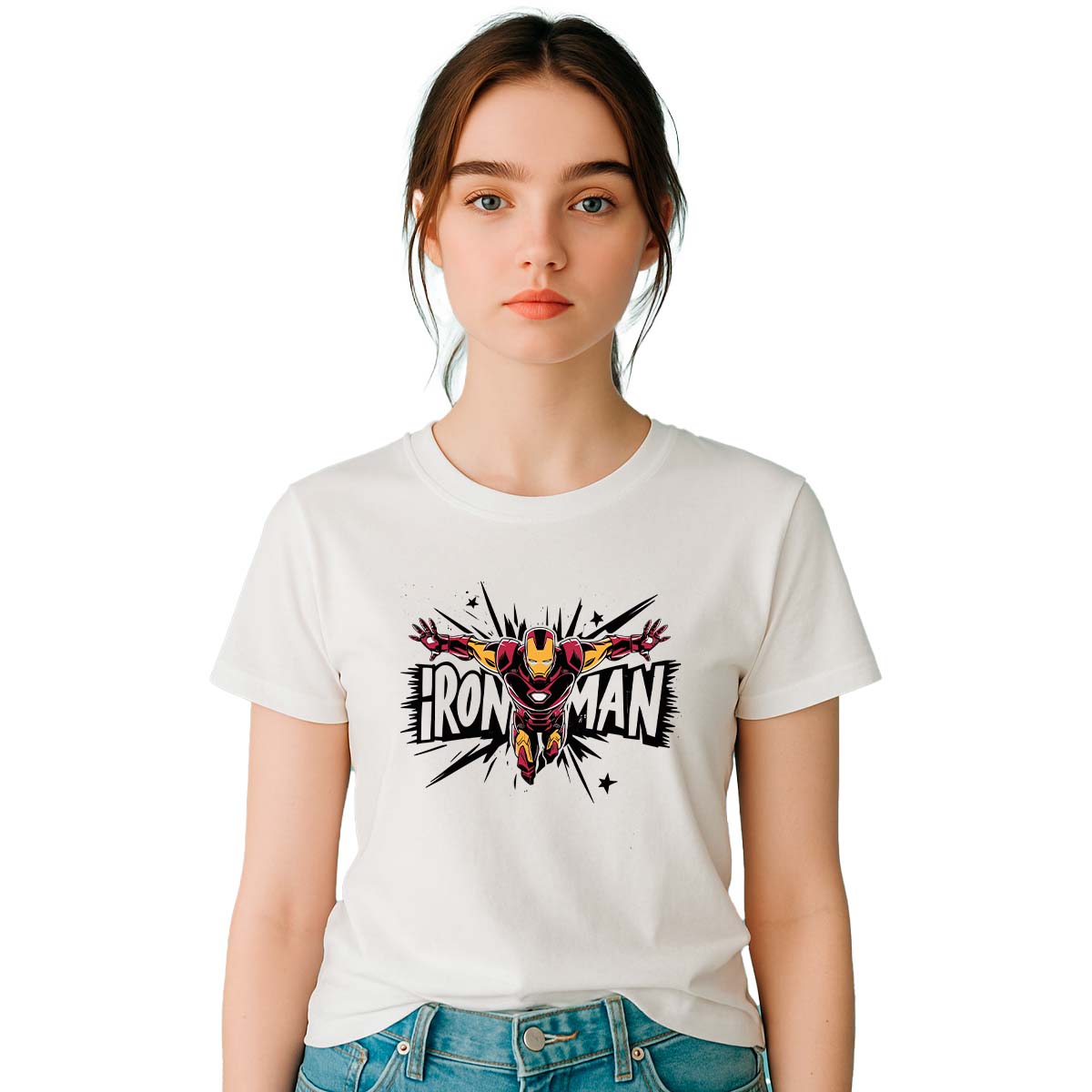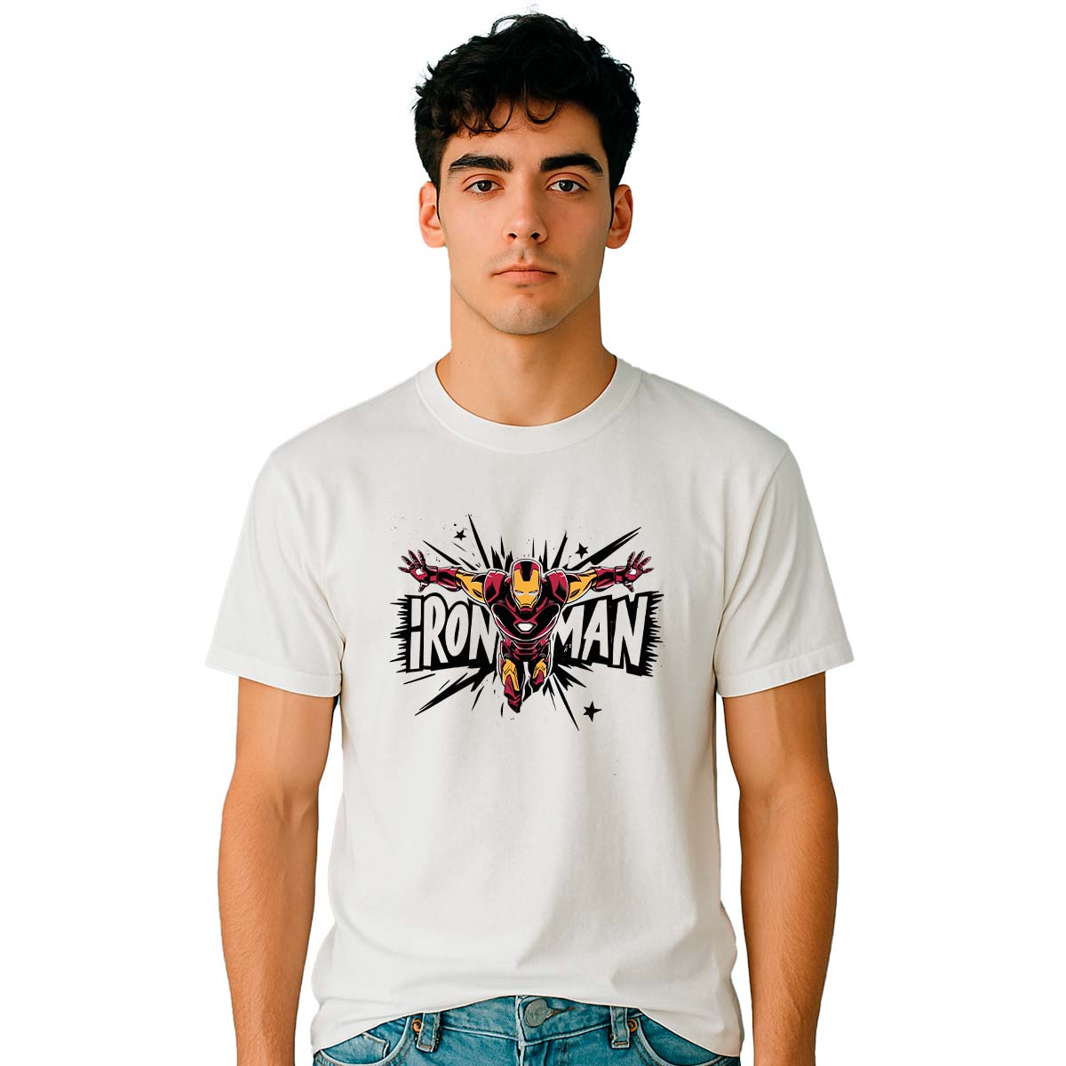 Confeccionada en 100 por ciento algodón, esta camiseta ofrece frescura, suavidad y resistencia, ideal para el uso diario o para lucirla en eventos geek, convenciones o maratones de películas. El arte estilo cómic de Iron Man se imprime con tecnología DTF, garantizando una imagen de alta definición, colores intensos y excelente durabilidad.