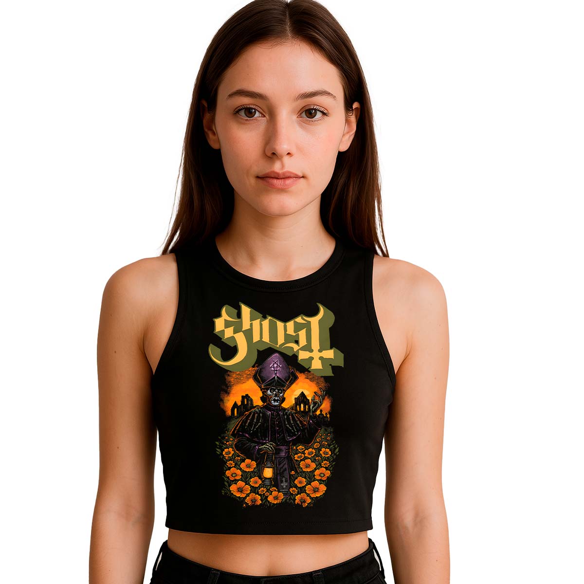 Lleva el aura oscura y la sagrada elegancia de Ghost Peacefield con esta Tank Top inspirada en la icónica mansión que simboliza una nueva etapa en la historia de la banda. Un diseño que fusiona lo ritual con lo moderno, ideal para quienes viven el misterio, la teatralidad y la fuerza visual de Ghost.