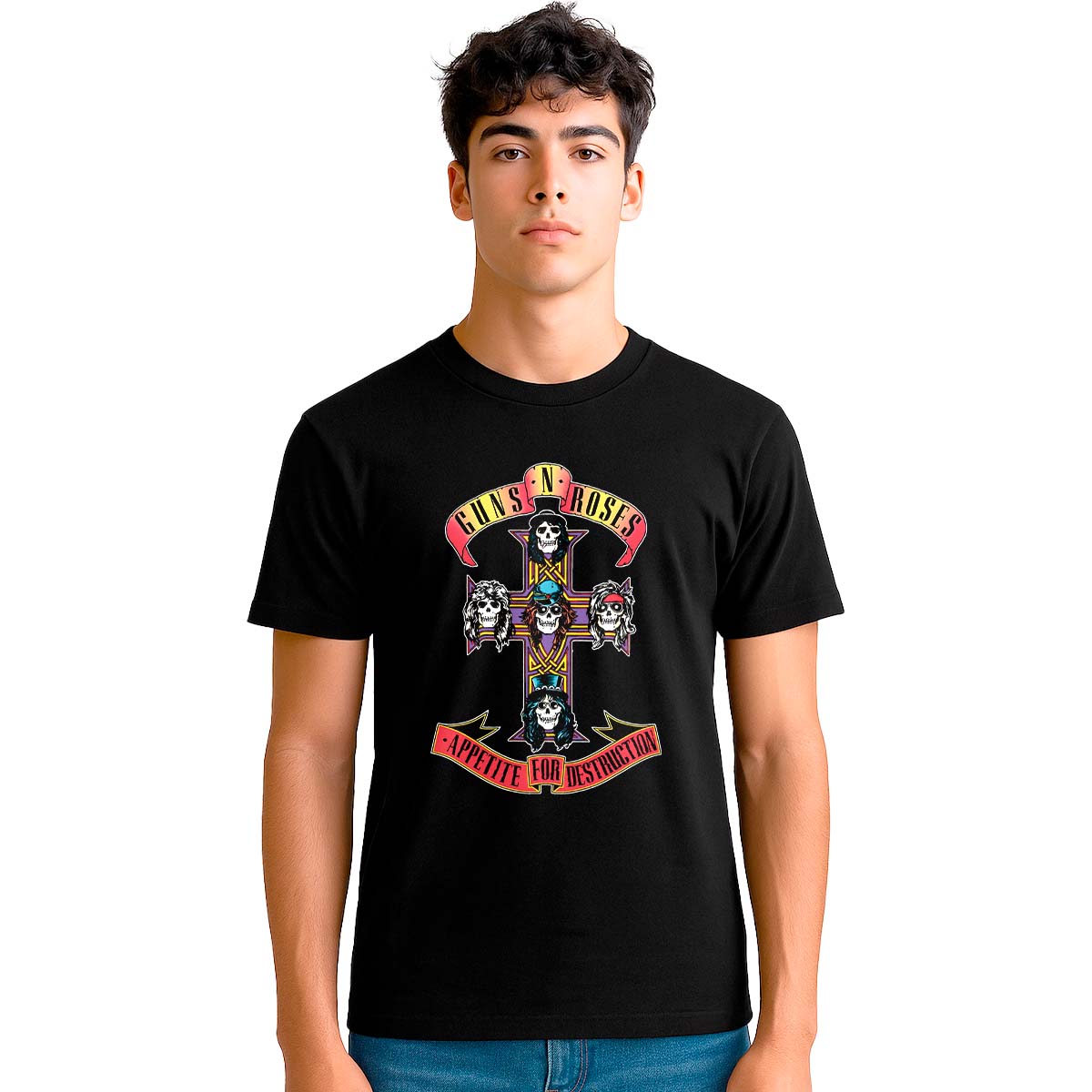 Lleva contigo el álbum que redefinió el hard rock con la Playera Guns N Roses Appetite For Destruction, una prenda inspirada en el debut explosivo de Guns N’ Roses que marcó a toda una generación. Su diseño transmite rebeldía, actitud y energía pura evocando riffs incendiarios, letras sin censura y una época donde el rock se vivía sin límites.