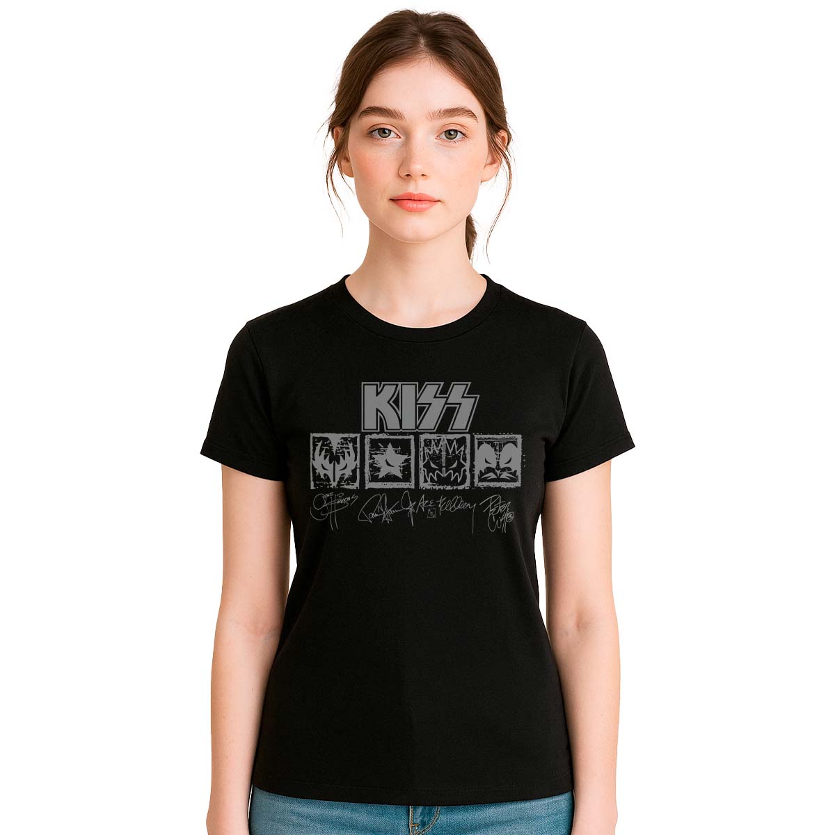 Lleva contigo la esencia auténtica, la historia y el legado de una de las bandas más espectaculares del rock con la Playera Kiss Firmas, una prenda inspirada en las rúbricas originales de los integrantes de Kiss. Su diseño transmite exclusividad, pasión y orgullo evocando escenarios encendidos, guitarras electrizantes y décadas de himnos inolvidables.