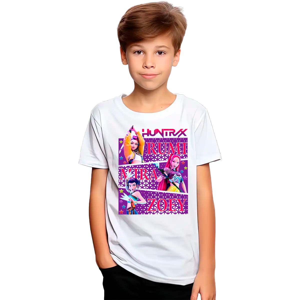 Lleva contigo la fuerza y determinación de Las Guerreras del K-Pop (K-Pop Demon Hunter) con la playera Las Guerreras del K-Pop Lucha, una prenda que representa el coraje, la disciplina y la pasión que impulsan al grupo a superar cada desafío. Su diseño transmite poder y movimiento, inspirado en la energía combativa y la unión que caracteriza a las Guerreras y a todos sus fans.