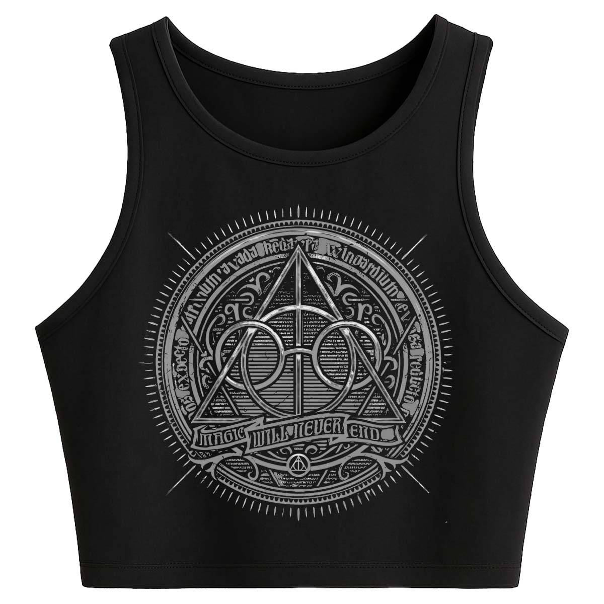 Conecta con el símbolo más poderoso del mundo mágico con este tank top Harry Potter Reliquias, un diseño inspirado en el emblema de las Reliquias de la Muerte, representación de destino, poder y legado. Un ícono que identifica a los verdaderos fans de la saga y que transmite misterio y significado en cada detalle.