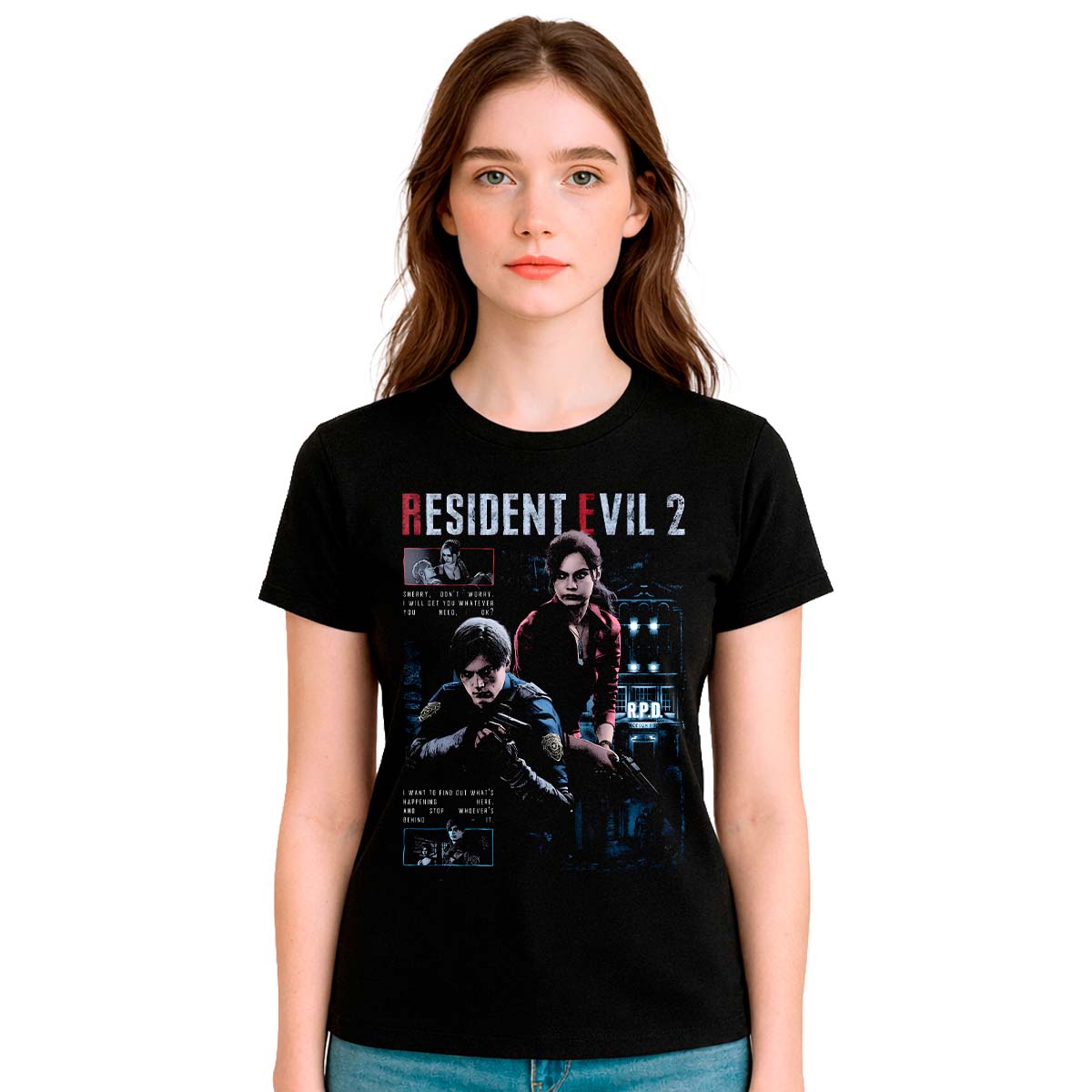 Playera Resident Evil 2 Leon y Claire una prenda que transforma acción, tensión y nostalgia gamer en identidad.